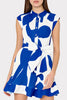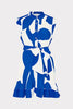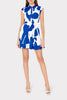 Cut from a lightweight pleated fabric, the Joan cap-sleeved minidress features our Grand Foliage print in blue and white. It has a button front closure that gives way to a flared skirt and is finished with a self-tie at the waist. Style yours with flats for work or a simple heel for parties.