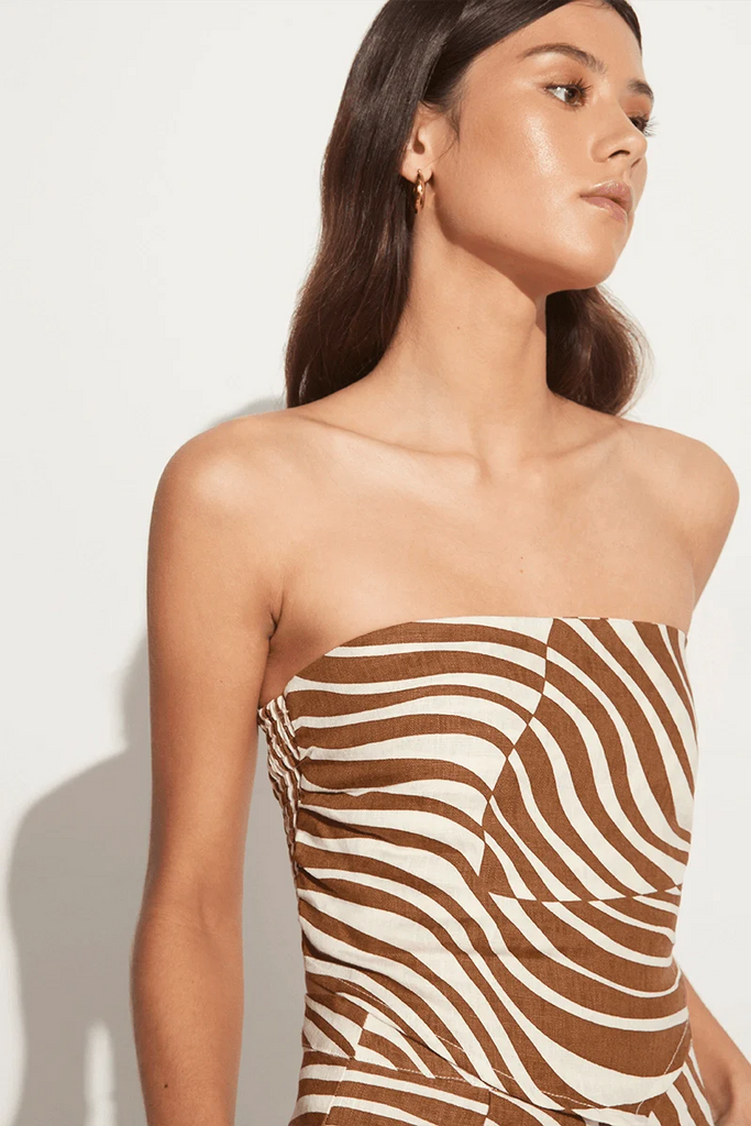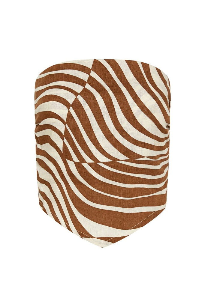 Discover a sunshine-ready crop top to transport you through the summer in the La Loza Top. A printed scarf-inspired crop top designed with a sun-ready strapless design, handkerchief-style hem and shirred back for comfort. Mindfully made from responsibly sourced linen and artisanally hand-patterned with retro stripes throughout.