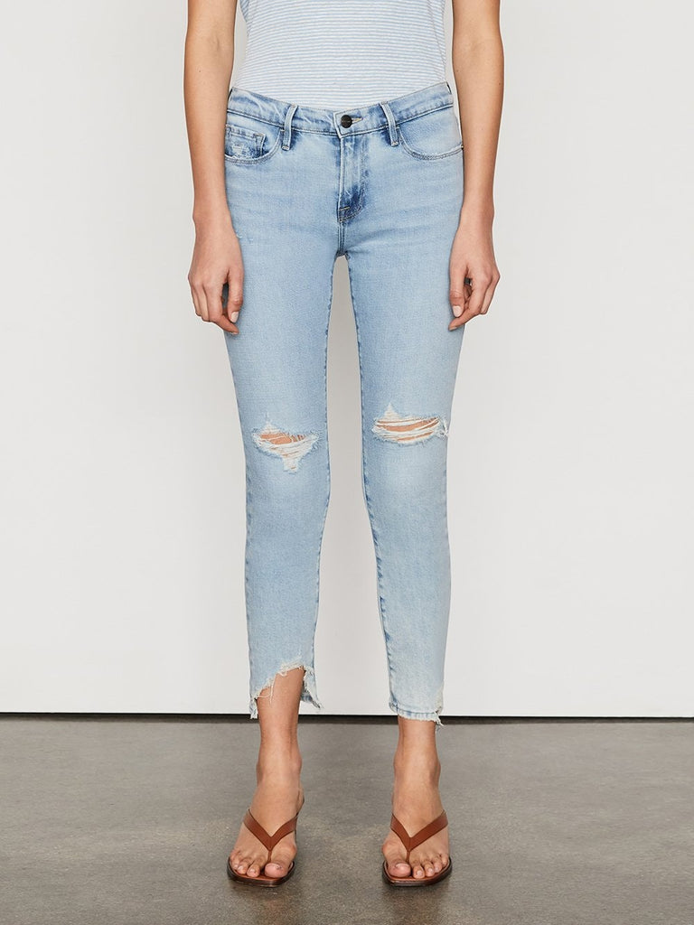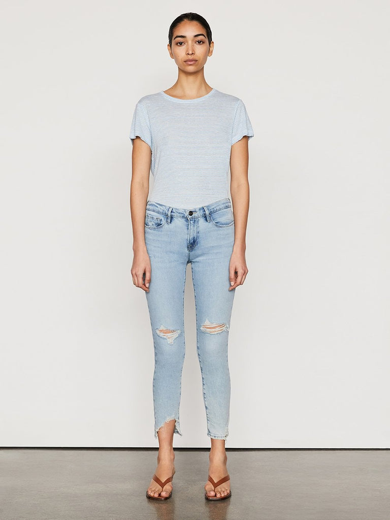 This mid-rise boyfriend jean features a cropped length and raw edges for an undone feel. As part of our sustainable denim collection, this jean is made with new weave denim, a lightweight and breathable stretch fabric made from hemp, which uses less water than cotton and is dyed with natural indigo. Perfect for those days when it feels too hot for jeans. It's intended for a slightly oversized—we recommend sizing down if you prefer a more fitted look.