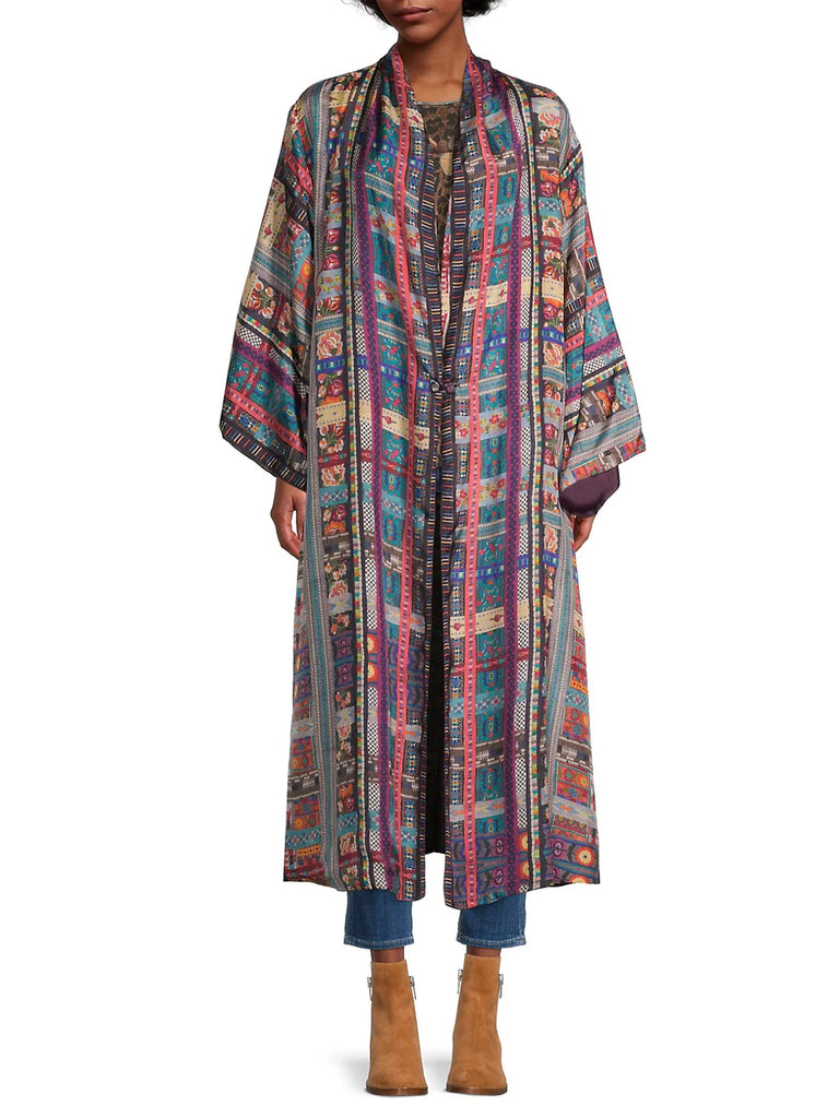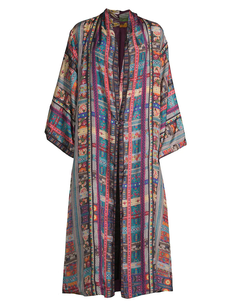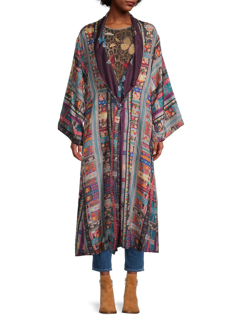 The Lexi Heart kimono from Johnny Was is crafted of luxe silk in a mixed print.