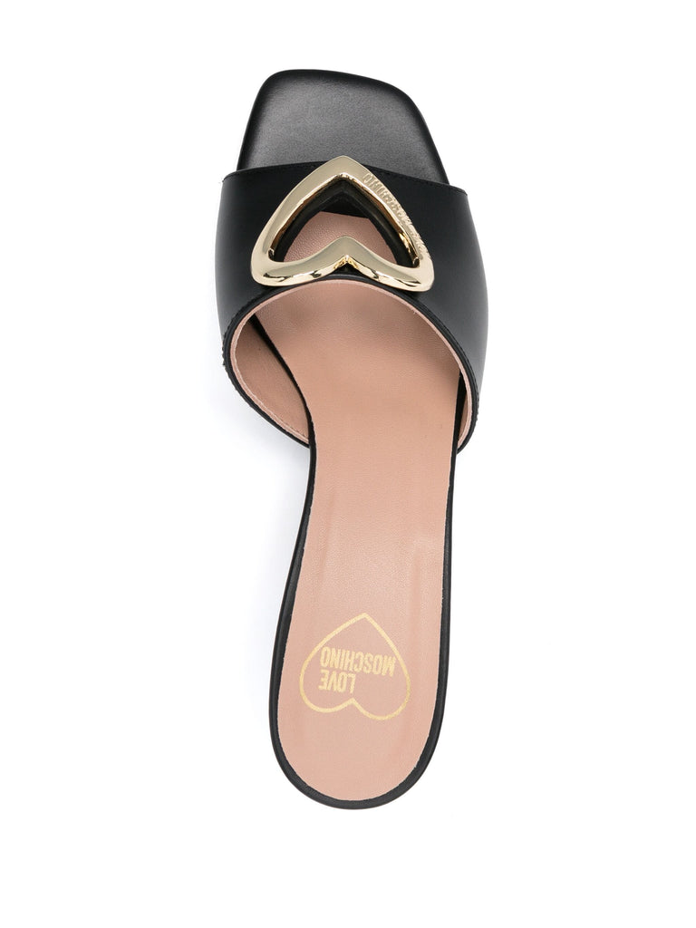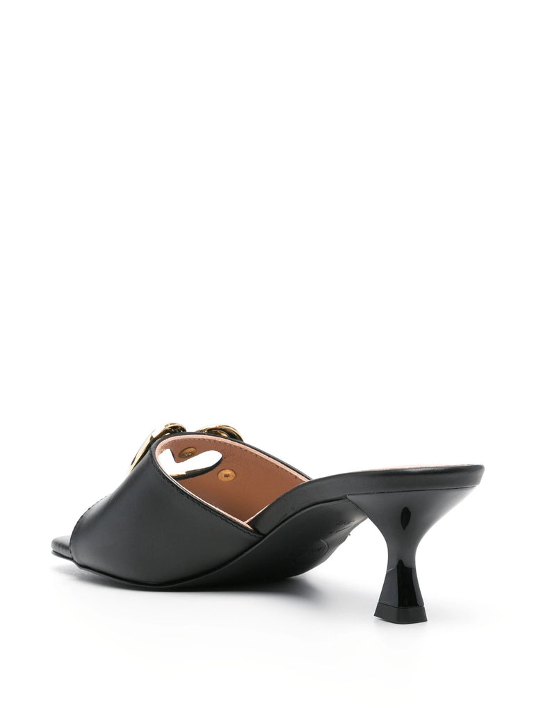 Logo Plaque Leather Mules - Black