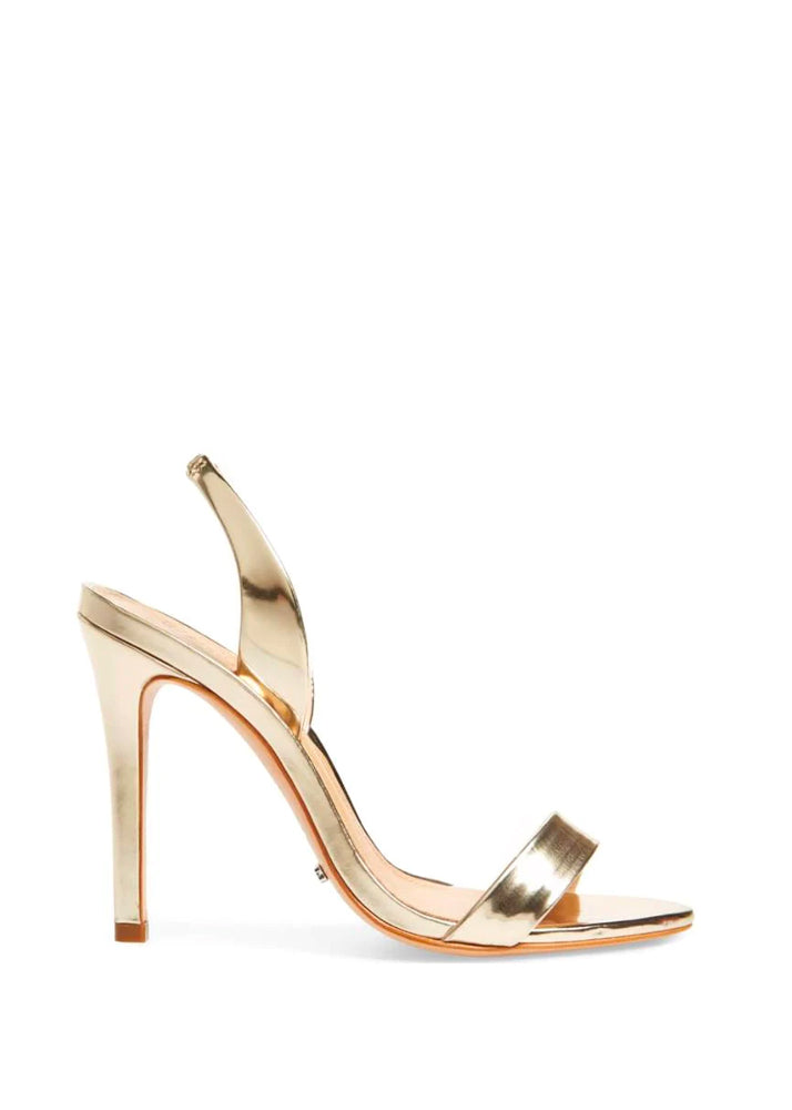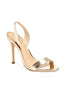 A sleek, strappy sandal in metallic specchio leather. The perfect pair of shoes to wear to any party.