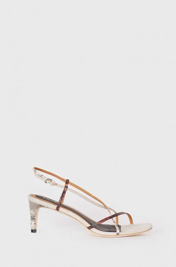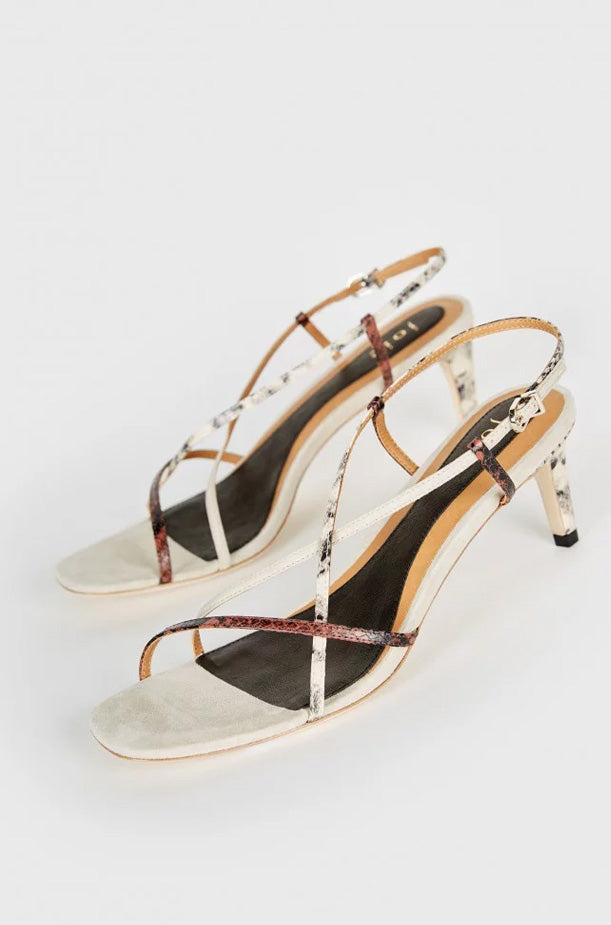 Not your average strappy sandal, these are delicate and unexpected thanks to the mixed print crossover straps. Slide them on to punch up every outfit from denim to dresses.
