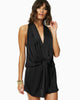 Gorgeous satin charmeuse comes together at the waistline with a knotted effect in the sleeveless Marie Dress. The plunging neckline highlights your decolletage and the thigh high hem will give you legs for days