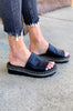 Mayumi sandal in black leather. Slight platform for comfort and style