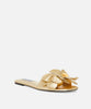 The MELENA slide is an everyday update to our AMANI sandals, with the same square toe and fabric flowers on the front strap, but set on an easy flat sole in a slip-on design.