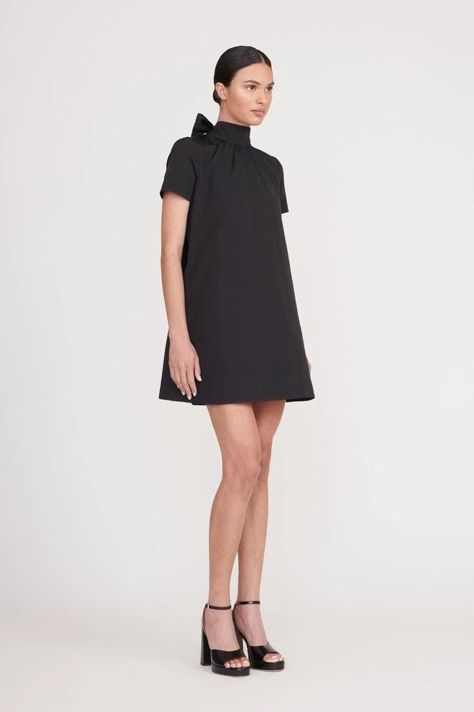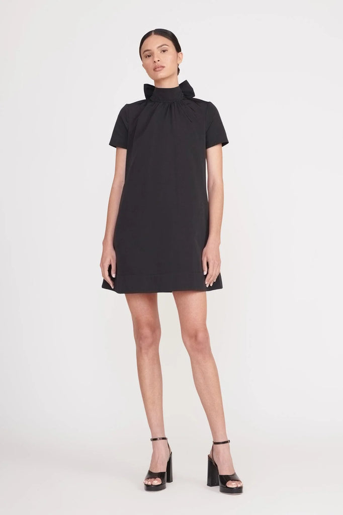 The Mini Ilana is a high neck mini dress with a scoop back and functional, self-tie bow collar. Constructed out of grosgrain fabric, this dress is the perfect statement piece for any occasion