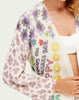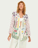 The lightweight, flowing open-front design makes it perfect for layering over tanks or dresses. Hand-drawn in our studio with bold marker colors, this piece blends organic florals with geometric shapes.
