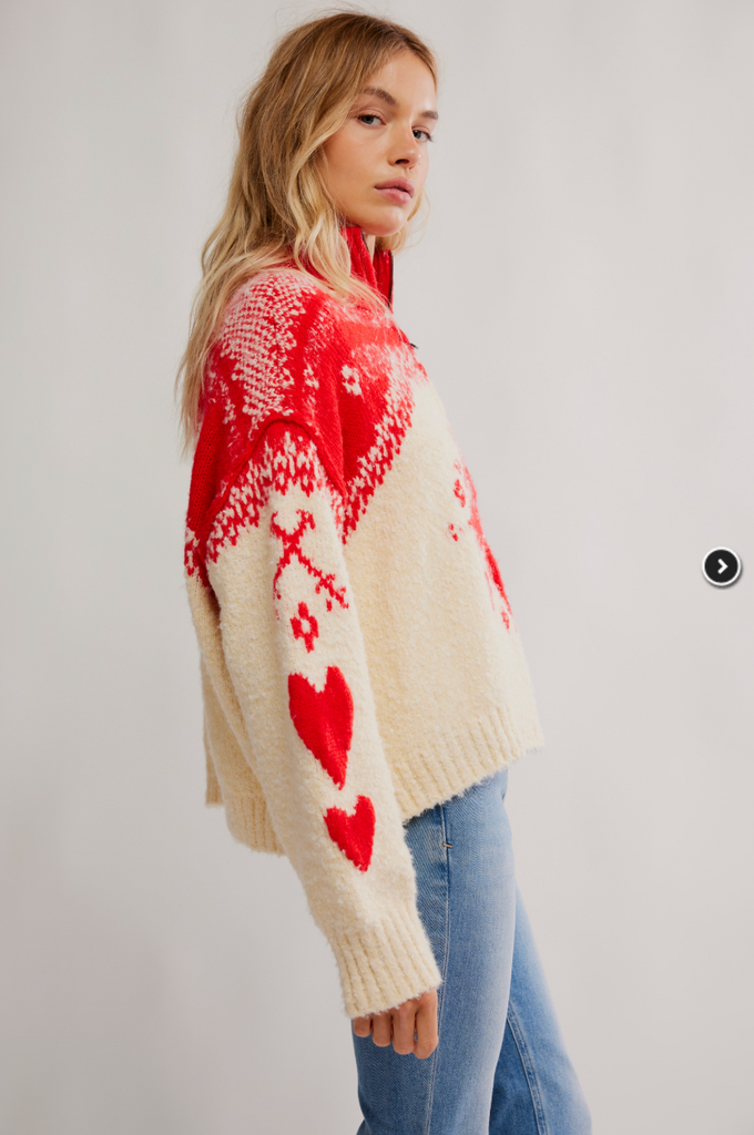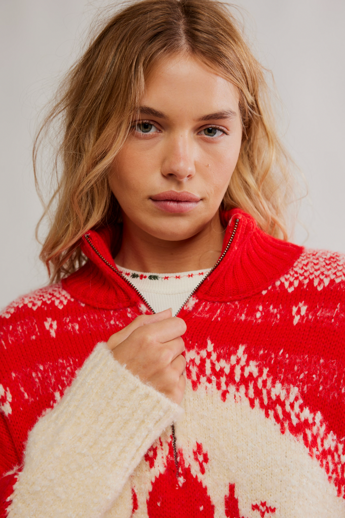 Cozy nights and festive feels, this slouchy sweater features a soft knit fabrication and an oversized, quarter-zip-inspired silhouette, creating the perfect laidback layer.