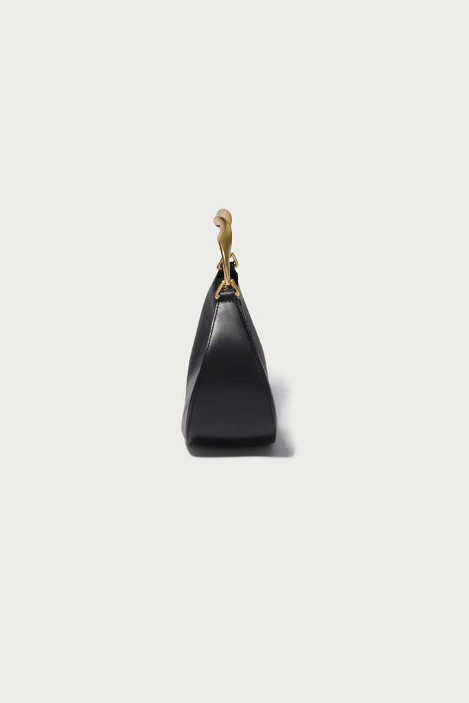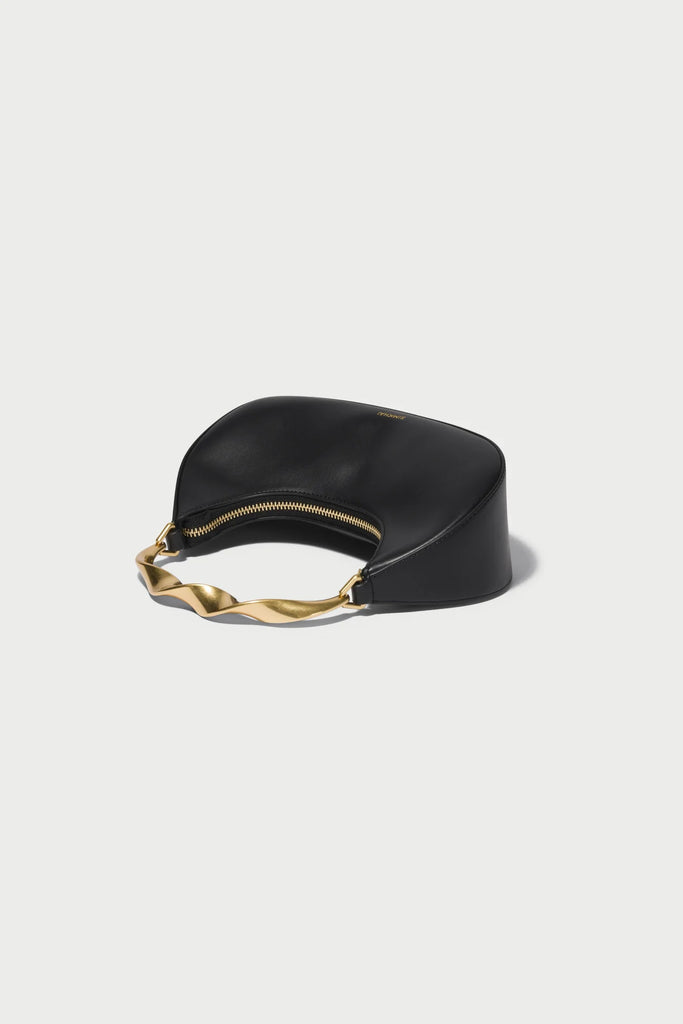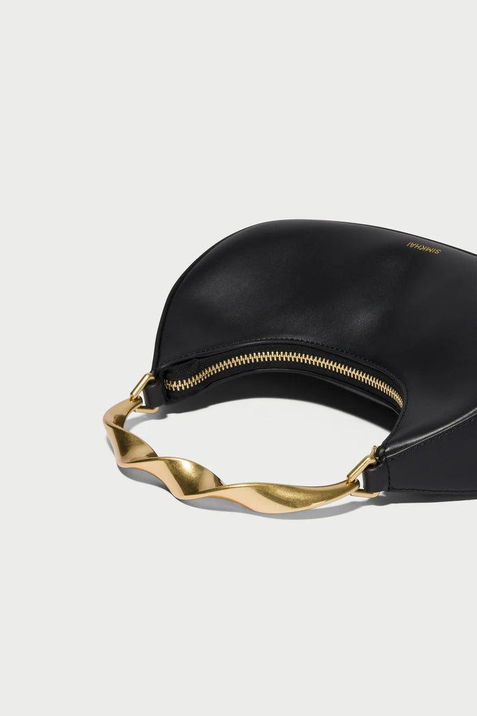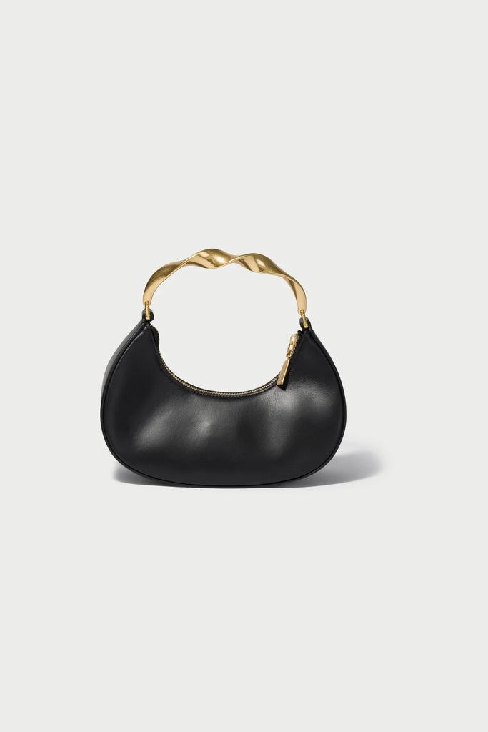 The Nixi Hobo Bag in Black. Showcasing a twisted handle atop a seamless, rounded silhouette, this handbag marries art with utility, creating an accessory that complements both casual and sophisticated styles.