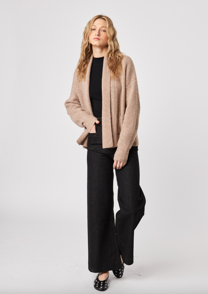 The Noah Cardigan from John and Jenn offers an effortless open drape, ideal for layering this fall. It combines a refined look with a casual vibe, making it a versatile addition to your wardrobe.