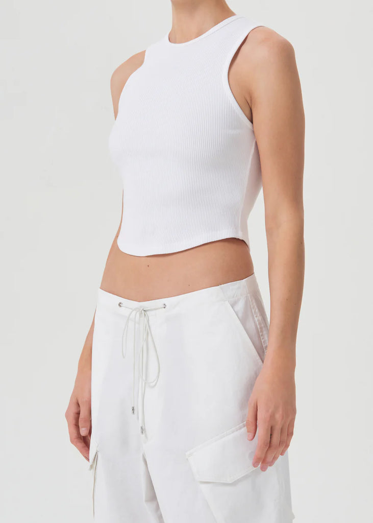 Our new must-have tank for the season. The Nova is crafted from our signature form-fitting, supportive yet breathable rib, perfect as the weather warms. The curved, cropped hem makes this the perfect tank to pair back with low rise denim, and yes, low rise is back, tell your friends.