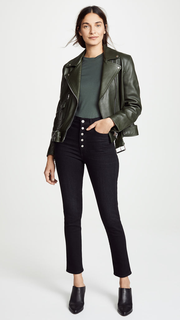 Olivia Exposed Fly High Rise Skinny Ankle - Licorice