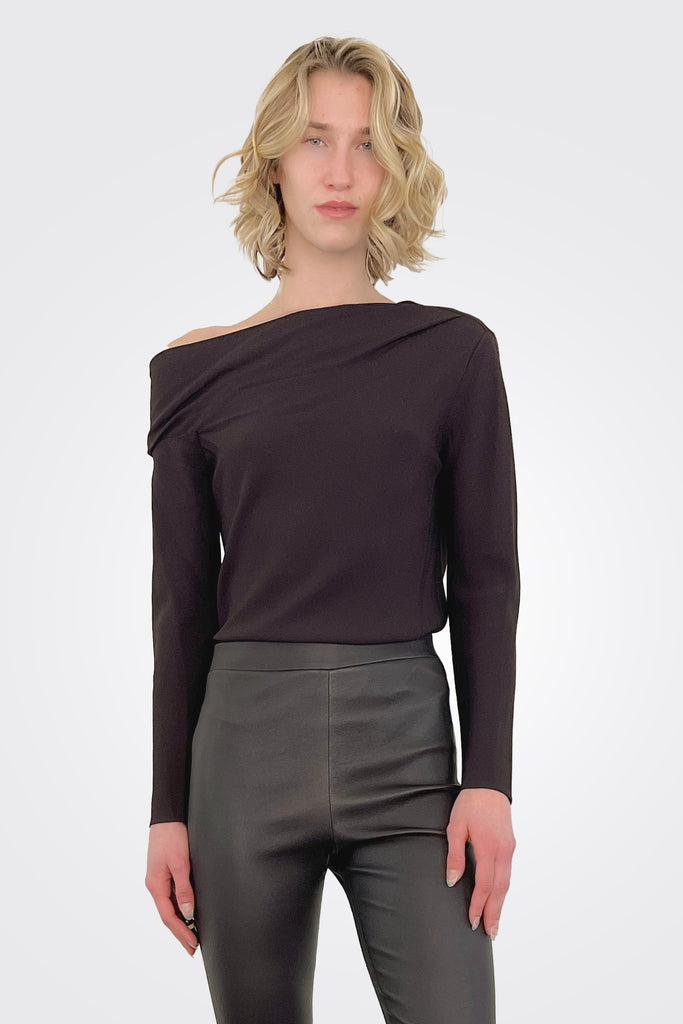 Theory tastefully minimalist aesthetic is on full display with this top. Free from embellishent, it arrives in a jet-black hue and is defined by its one-shoulder silhouette.