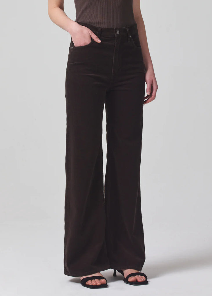 Referencing baggy legged silhouettes from the early 2000’s, the Paloma sits at the waist and an easy flowing leg. Now crafted in our Stretch Corduroy, style this pairs with anything from a slim tee to a chunky knit. If you love our Annina, you'll love the Paloma.
