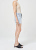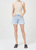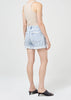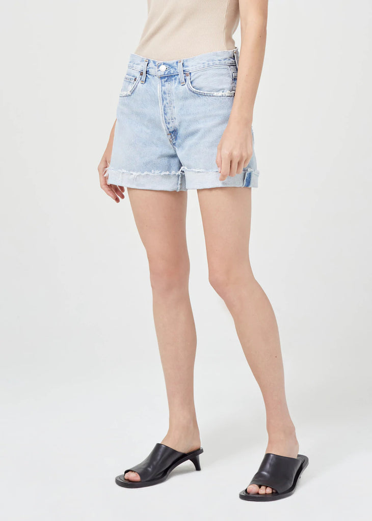 Looks Like: Light indigo with raw cuffed hem