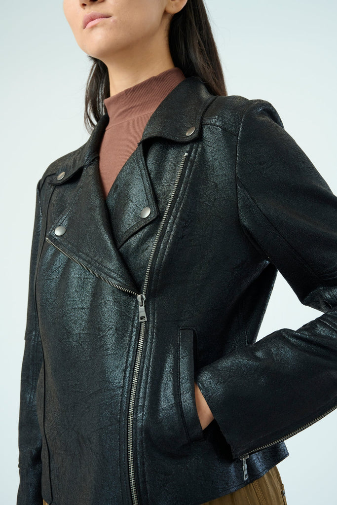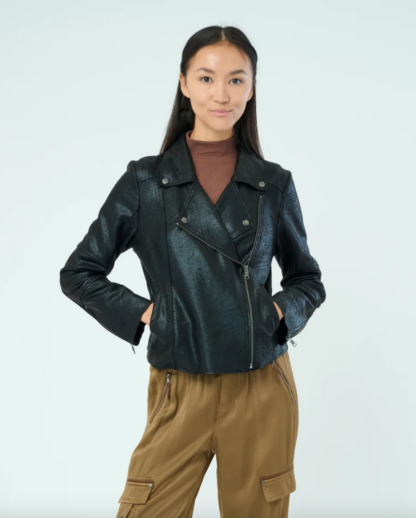 Rev up your style game with the Piper Metallic Moto Jacket! This isn’t just any jacket—it’s a statement piece that combines the edgy appeal of metallic distressed scuba suede with a classic moto design. Feel the unique texture of soft, supple suede fused with the durability and stretch of scuba fabric, giving you that perfect mix of comfort and sturdiness.