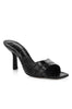 Meet the MVP of mules. This minimal slip-on sandal is designed in croc-embossed leather with a subtle stiletto heel.