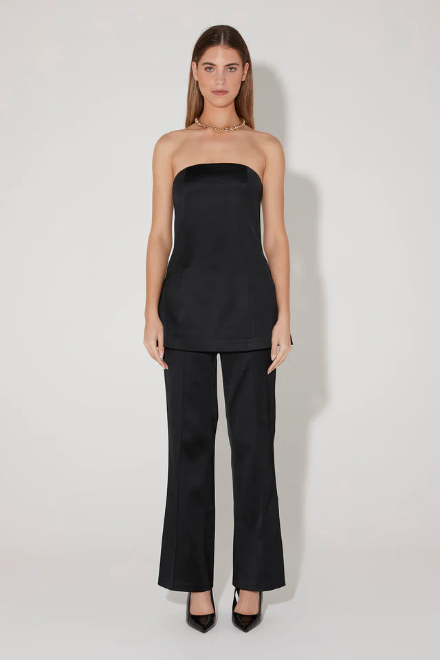 The Regina Pant is the perfect new suiting pant to dress up an outfit. The kick flare cut and high waisted design are figure flattering. Finished with a pin tuck detail and back welt pockets this is a classic shape to easily styled with your closet staples.