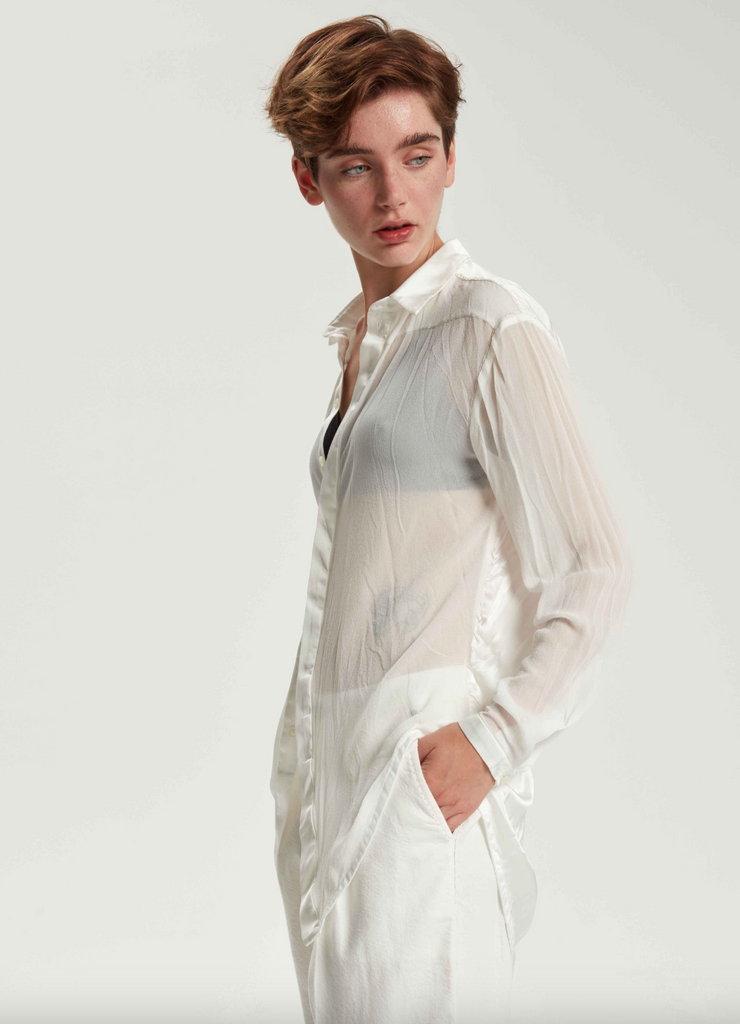 Regular Form Pure Silk Shirt - Original Off White