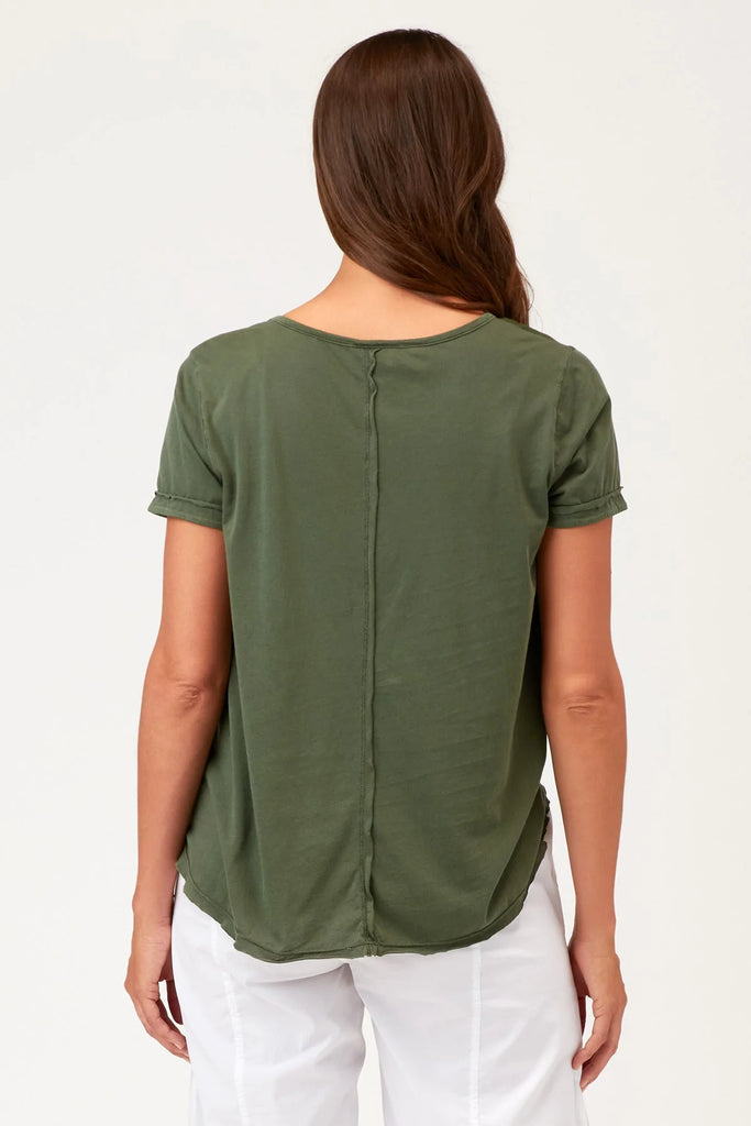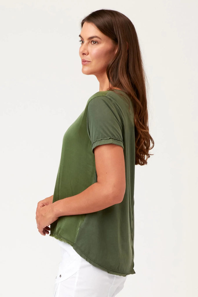 Pretty satin in the front, breatheable cotton jersey in the back; have a little dress up with your casual tee! Classic center back seaming and raw edges amp up the Renwick Tee.
