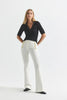 • Form fitting with a slim fit from the waist through the thigh and flares below the knee.