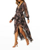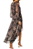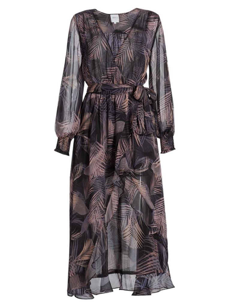 Crafted from a palm crinkle chiffon, this adjustable faux-wrap silhouette is the perfect takeaway piece that will also transition you into Spring and beyond. A double-lined dress with blouson sleeves leads into a semi-sheer high-low skirt with a ruffle trim. Pair with sandals for a casual look or heels for an elevated getaway look.