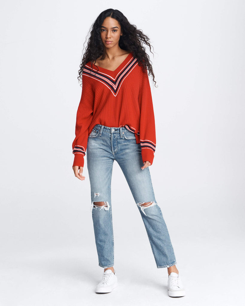 Fits slightly big. We suggest ordering a size down from your normal denim size for a more fitted look
