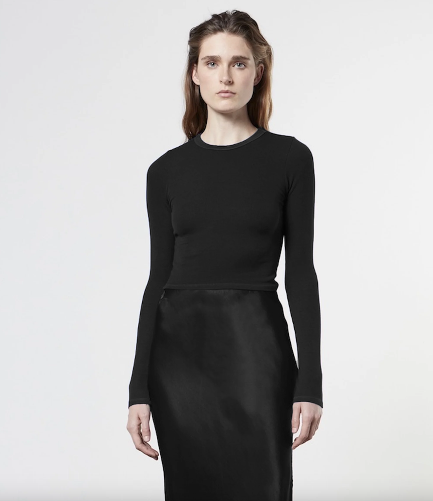 Crafted from our signature silk knit fabric for a slim and comfortable fit. This waist length top pairs easily with any of our skirts or trousers and is perfect for layering.