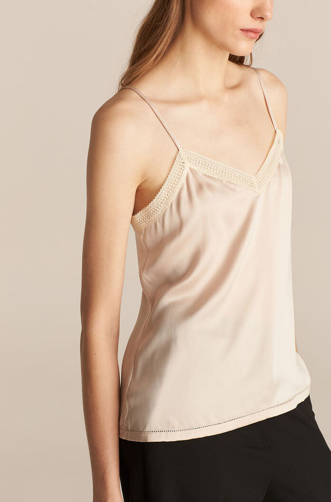 Presented in a classic tone given a richness on a soft and smooth silk charmeuse. Imbued with pretty details, a touch of lingerie in the embroidered cotton trim, a delicate essential is lent a romantic gesture, allowing for a more thoughtfully considered feminine sensibility for the everyday.