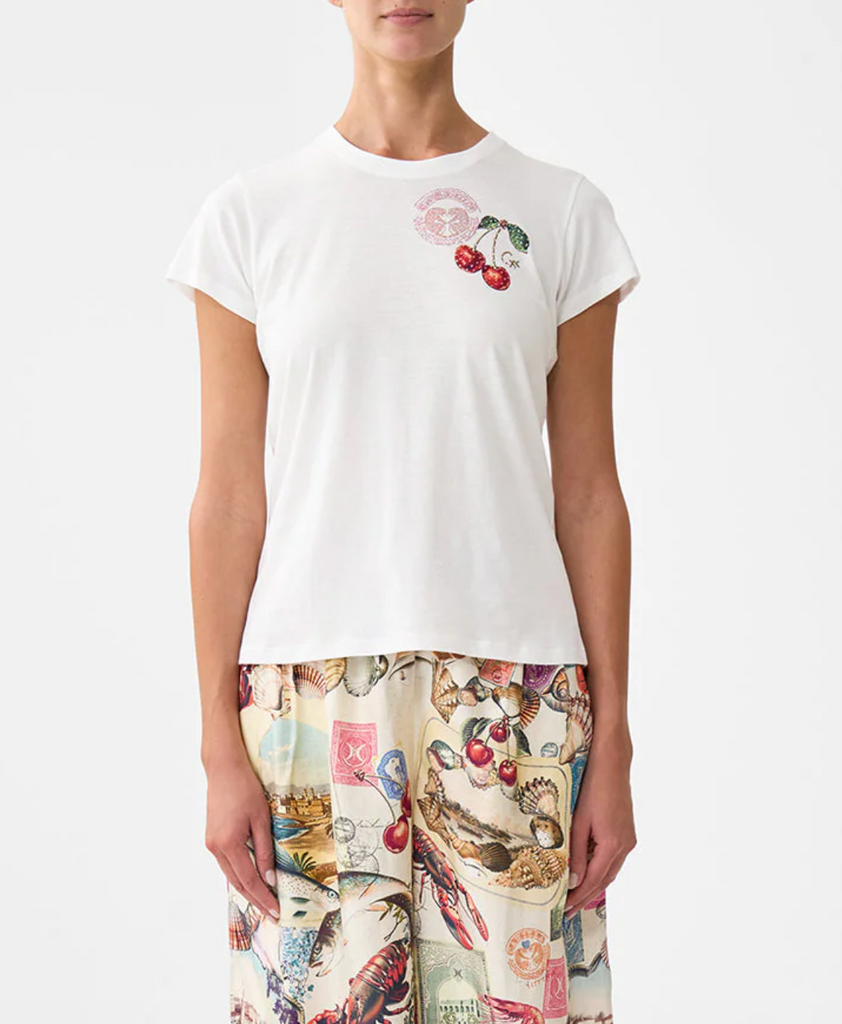 The Notes From The Road Slim Fit Round Neck T-Shirt is a handcrafted cotton silhouette designed by our in house artisans. Reimagined in an exclusive limited edition print, this slim fit t shirt is adorned with intricately placed crystal embellishment before being finished with a rounded neckline complete with ribbed detailing.