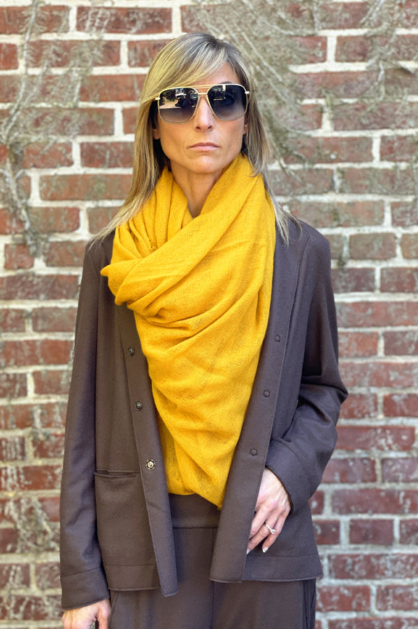 The large volume Soho is an open-weave hand-massaged pure cashmere shawl with a relaxed, casual look. Its open fringes soften the edges to give it a stylish yet versatile quality that also compliments more formal outfits, making it an absolute must for any wardrobe.