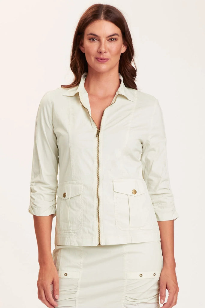 What has gathered 3/4 sleeves, snap front pockets, and a relaxed utilty jacket feel? That's right! Tanner does! Snatch one up before they’re sold out!