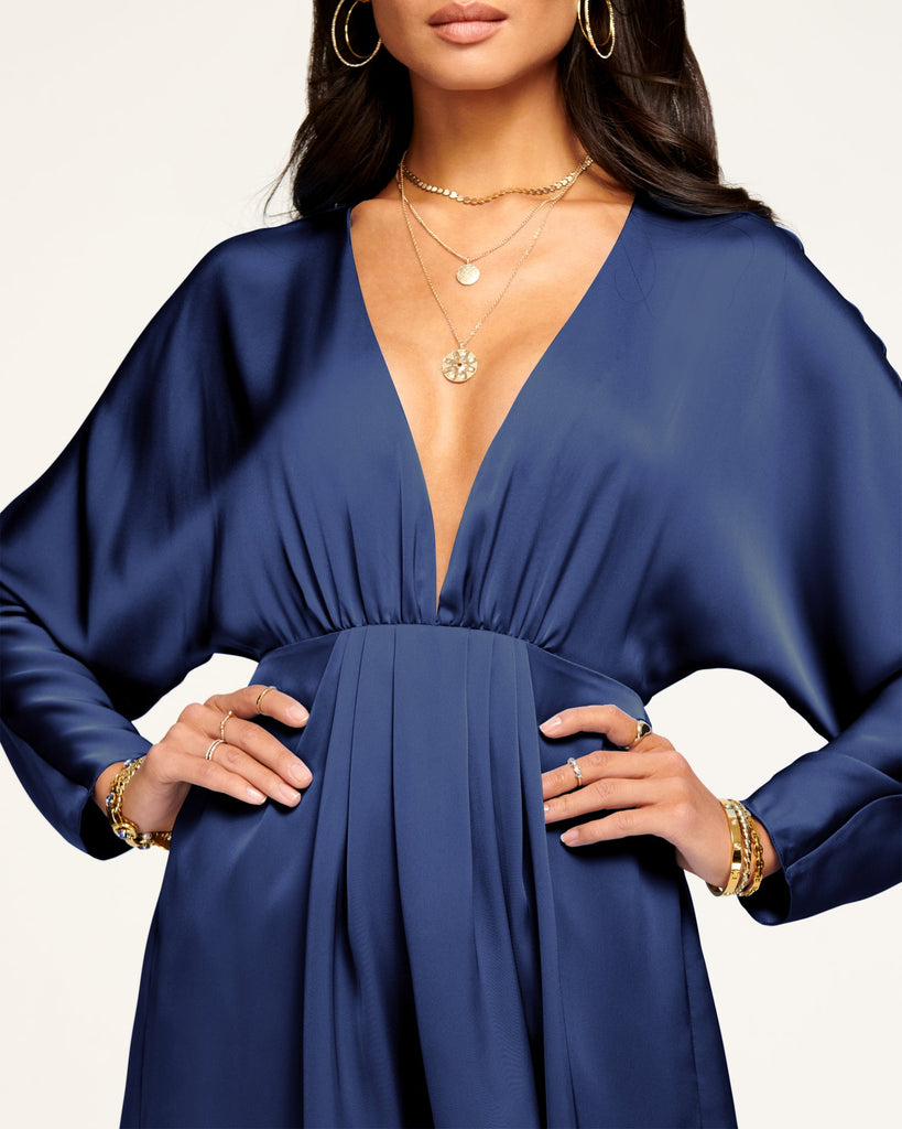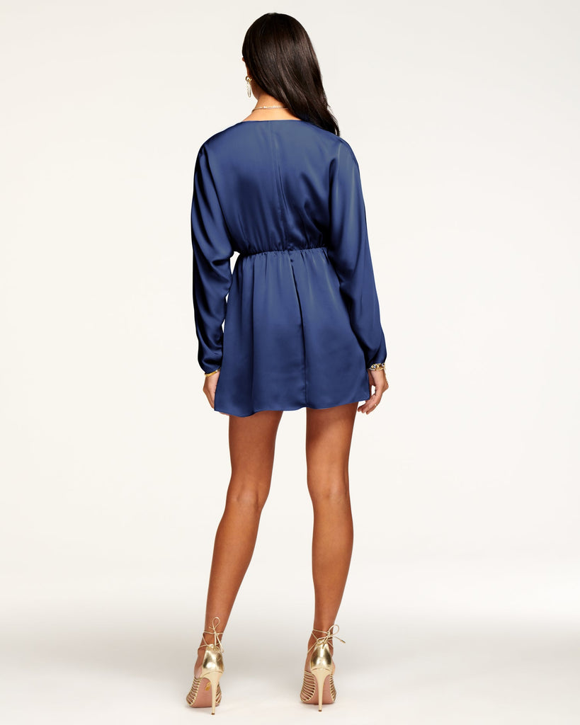 Sweep yourself off your own feet with the Tanya Dress, and let the plunging neckline do the talking. Demure with long sleeves, the cinched waist and light pleating on this mini dress delivers a powerful, statement making design.