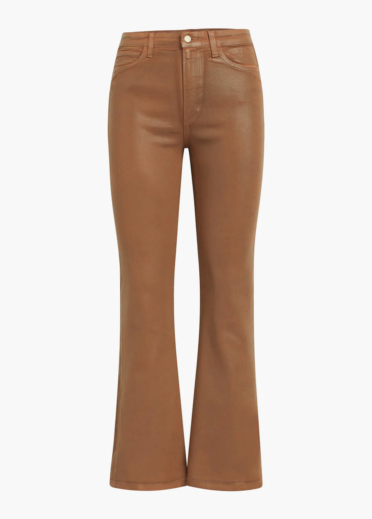 The Callie in Leather Brown is a high-rise cropped bootcut jean that has a super amount of comfortable stretch. The denim has been overdyed to a soft camel color and coated to give these pants some subtle sheen.9 1/4" RISE26 1/2" INSEAM