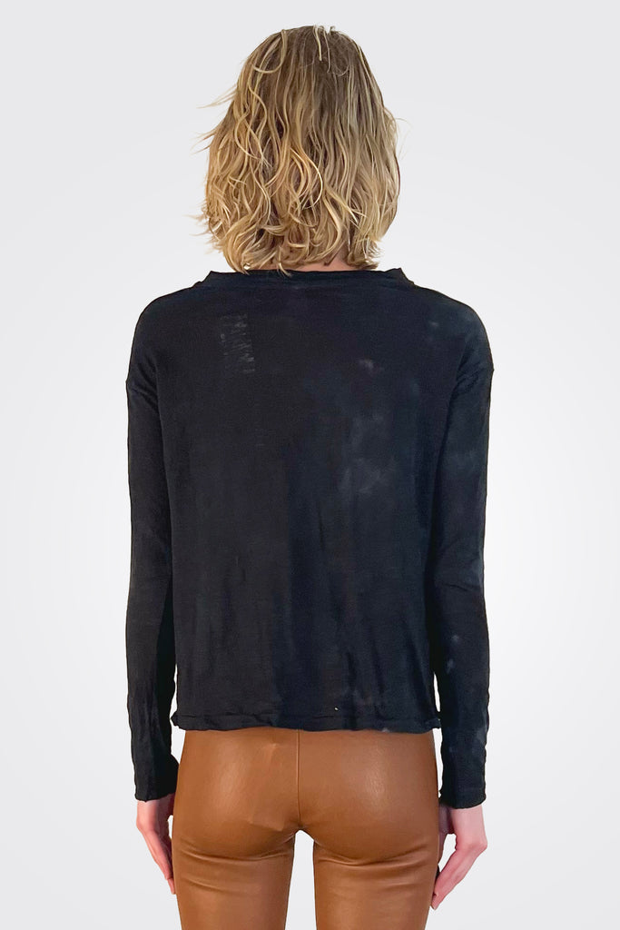 Flattering V-neck falls to just the perfect placement, with a casual-feeling rolled hem. A dependable, classic go-to.