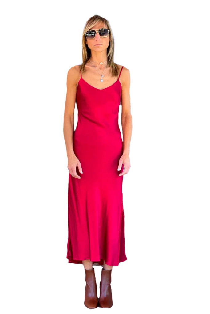 Show stopping and understated all at once, this dress is a winner. Made in a luxurious silky smooth fabric, this chemise style feels like you’re wearing a nightie but wears like you're ready to walk down a runway