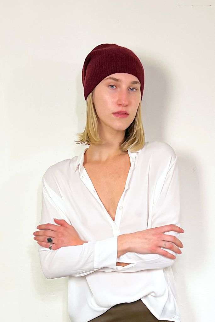 Wool Knitted Beanie - Burgundy