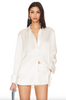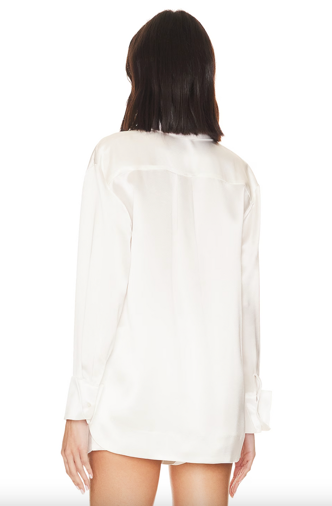 The Zucker Shirt by SER.O.YA is a classic silk button down shirt. It's complete with exaggerated cuffs.